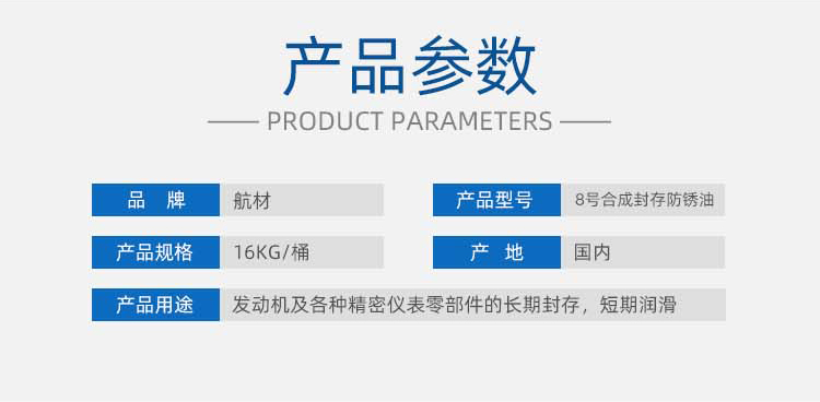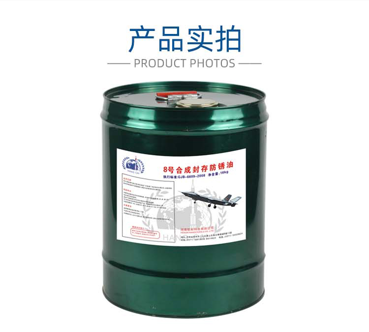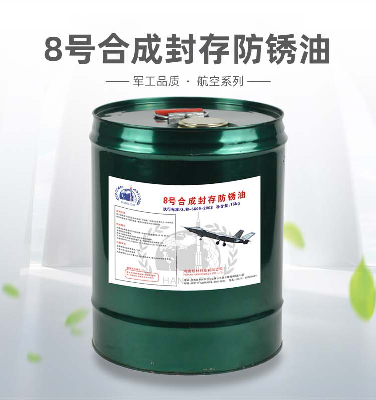 航材8号合成封存防锈油用于涡轮喷气航空发动机制造厂和修理厂的发动机长期封存,短期润滑。