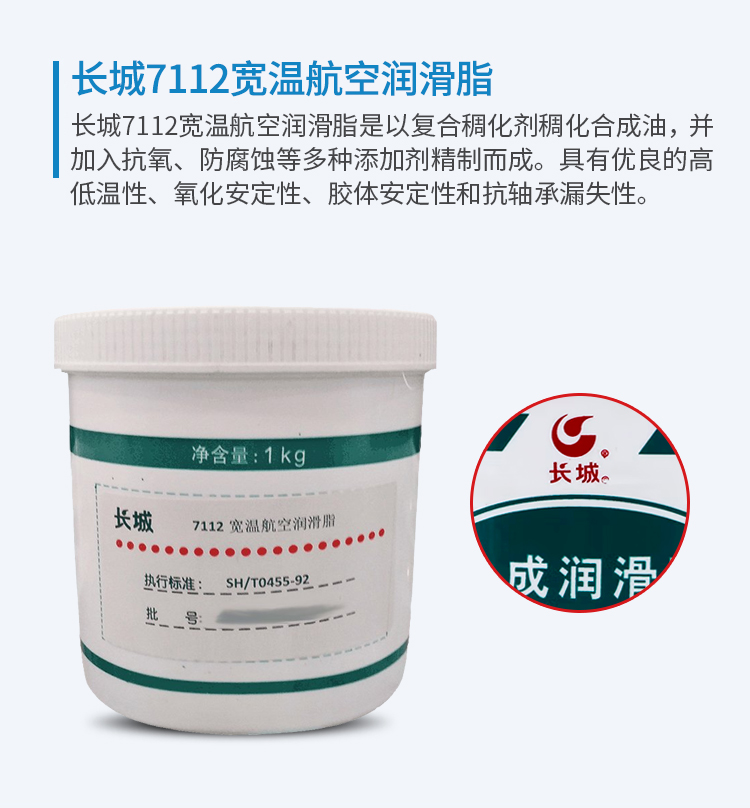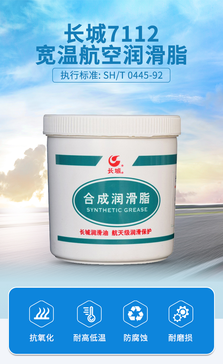 长城7112宽温航空润滑脂是以复合稠化剂稠化合成油,并加入抗氧、防腐蚀等多种添加剂精制而成。