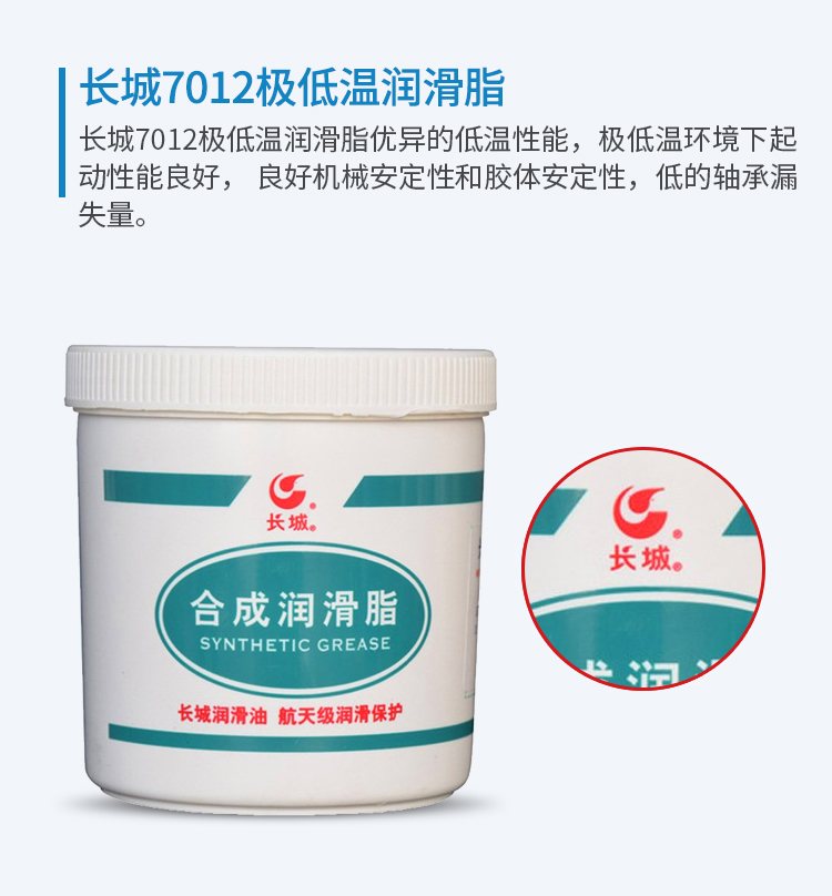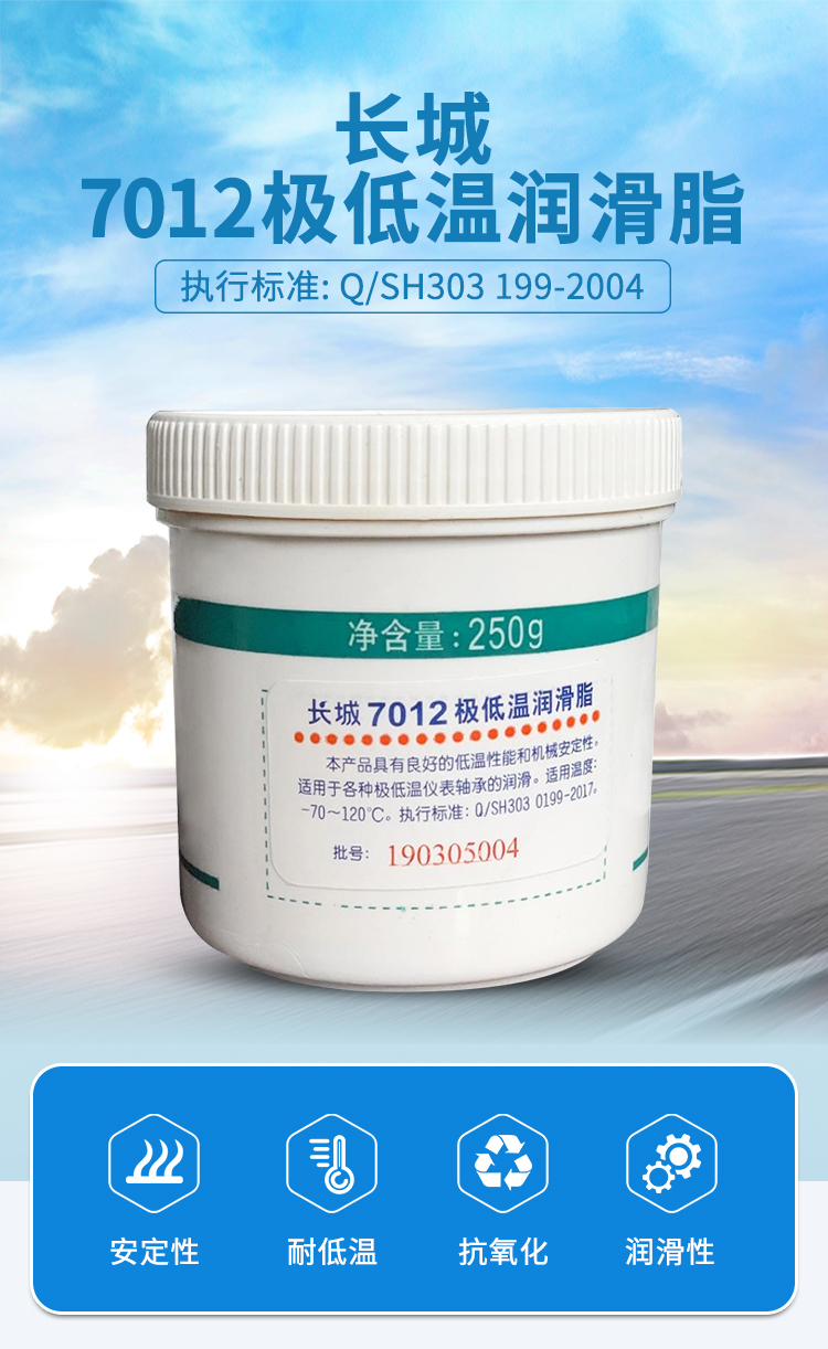 长城7012极低温润滑脂优良的低温性能,极低温环境下起动性能良好, 良好机械安定性和胶体安定性,低的轴承漏失量。
