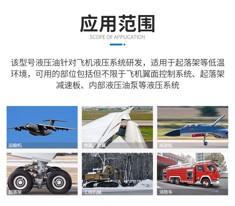 2.该型号液压油针对飞机液压系统研发,适用于起落架等低温环境;