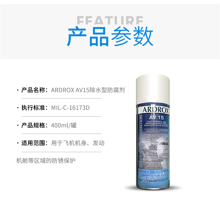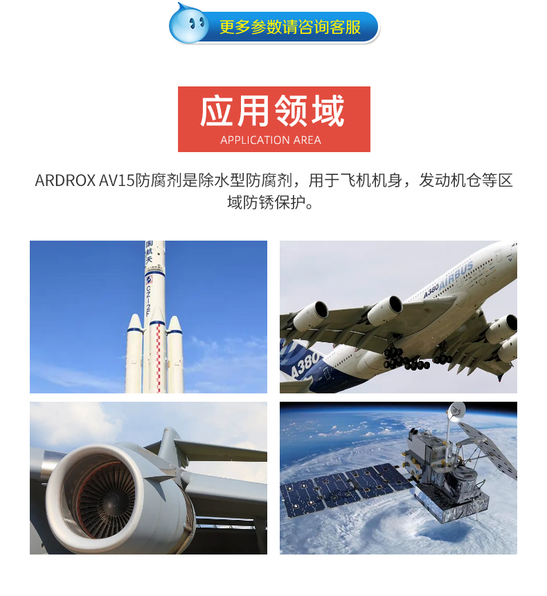 ARDROX AV15防腐剂是除水型防腐剂,用于飞机机身,发动机仓等区域防锈保护。