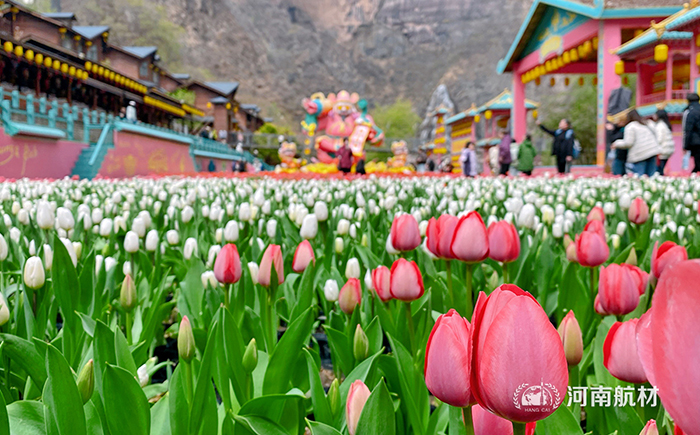 漫步于大峡谷桃源仙境,采购团队被郁金香花海包围。恰逢《山河社稷图》画卷实景展现,游客穿行花丛,采购经理驻足拍摄时,发现游客的汉服装扮材质特殊,随即记录:这种仿古绸缎明年中秋礼品采购可参考。