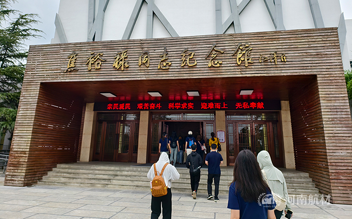 纪念馆主体建筑则饱含庄重与现代的张力:素雅的白墙以利落线条指向苍穹,木质底座坚实托举"焦裕禄同志纪念馆"的金色招牌。门楣电子屏上,焦裕禄精神内核陈列其中:"亲民爱民,艰苦奋斗,科学求实,迎难而上,无私奉献"。